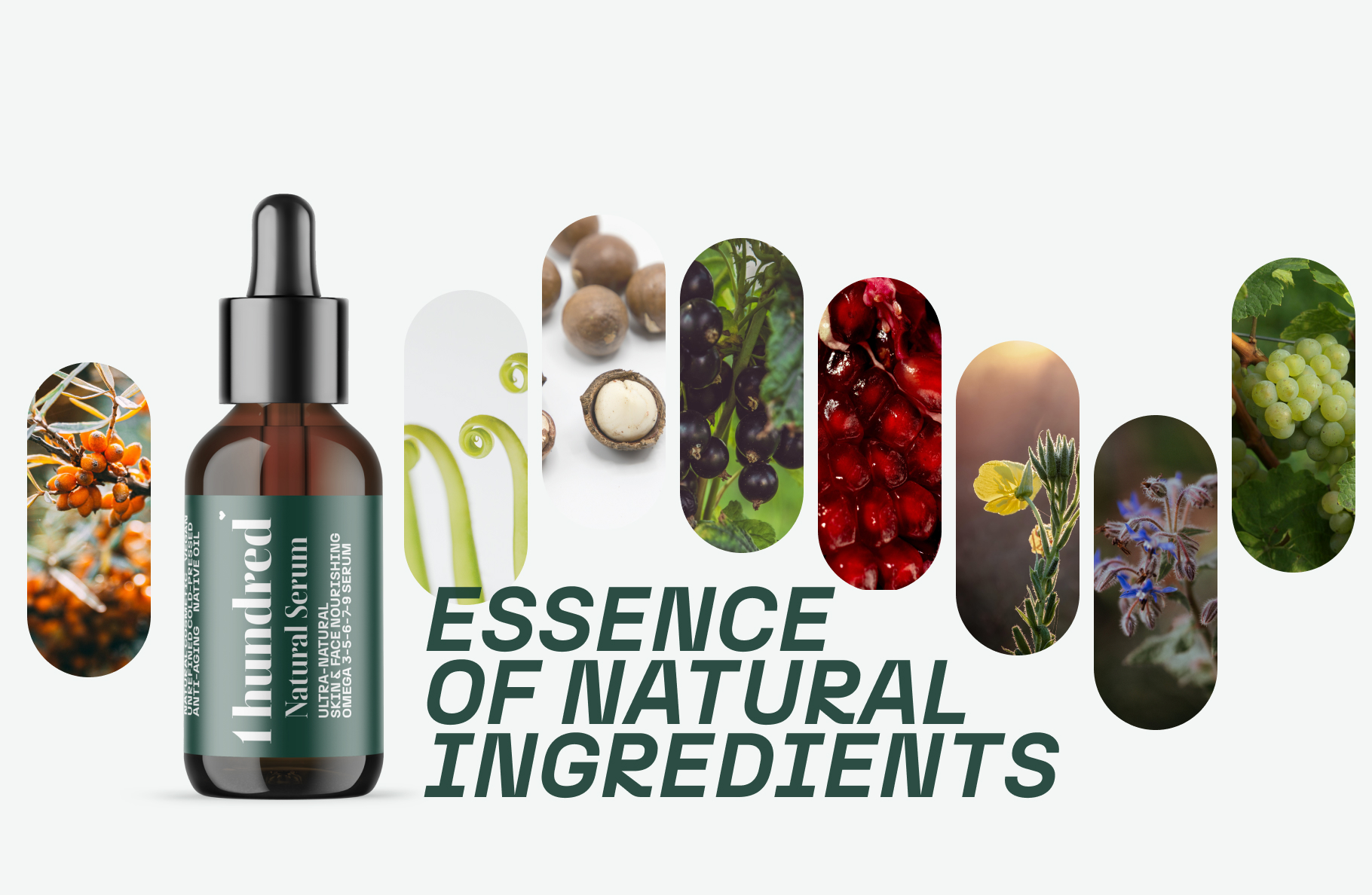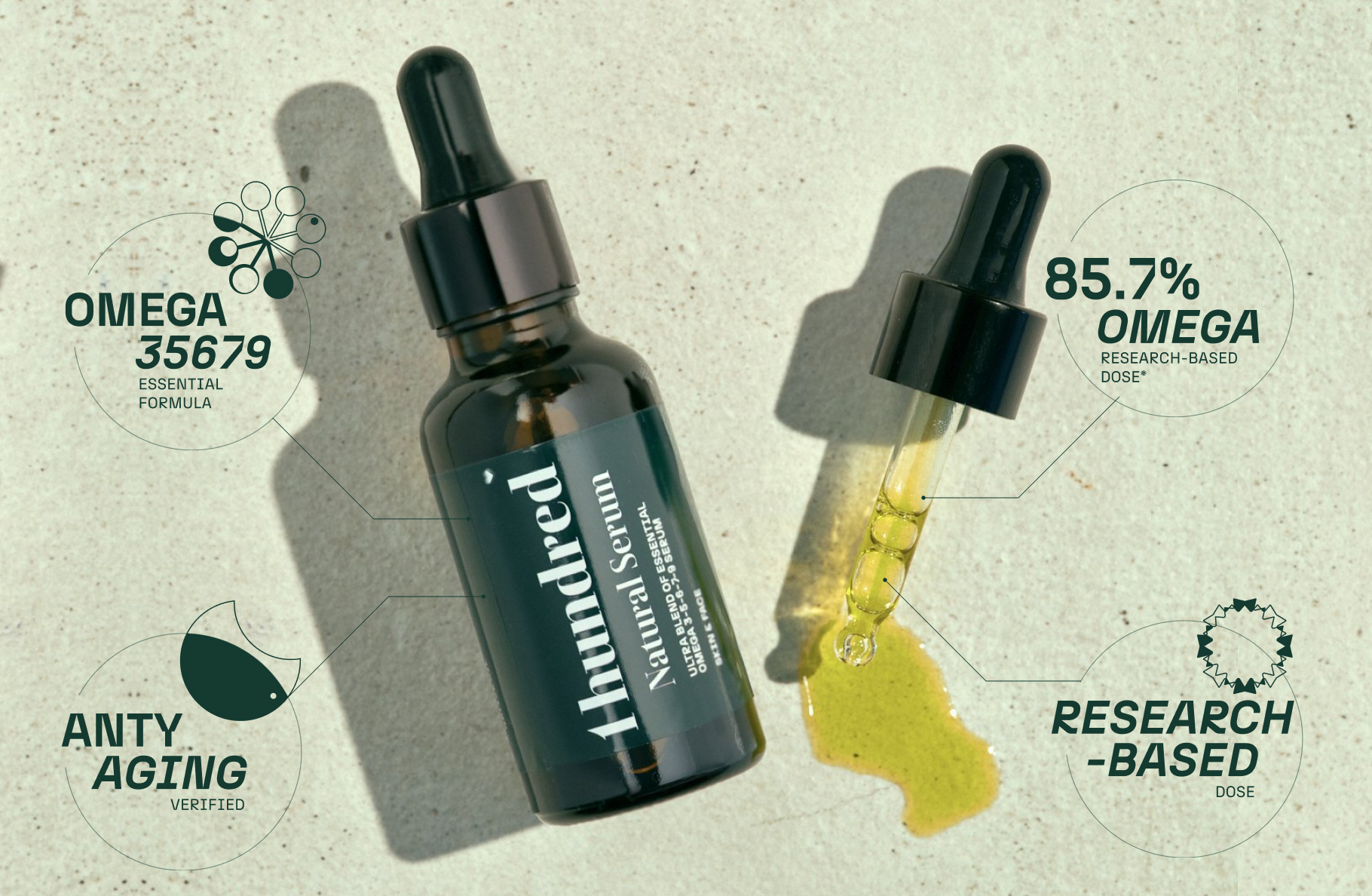 1hundred Omega 3-5-6-7-9 Serum is a 100% natural, broad-spectrum skin nourishment. It contains as many as 6 different types of essential Omega 3, 5, 6, 7, and 9 fatty acids, crucial for the health and fortification of our skin.