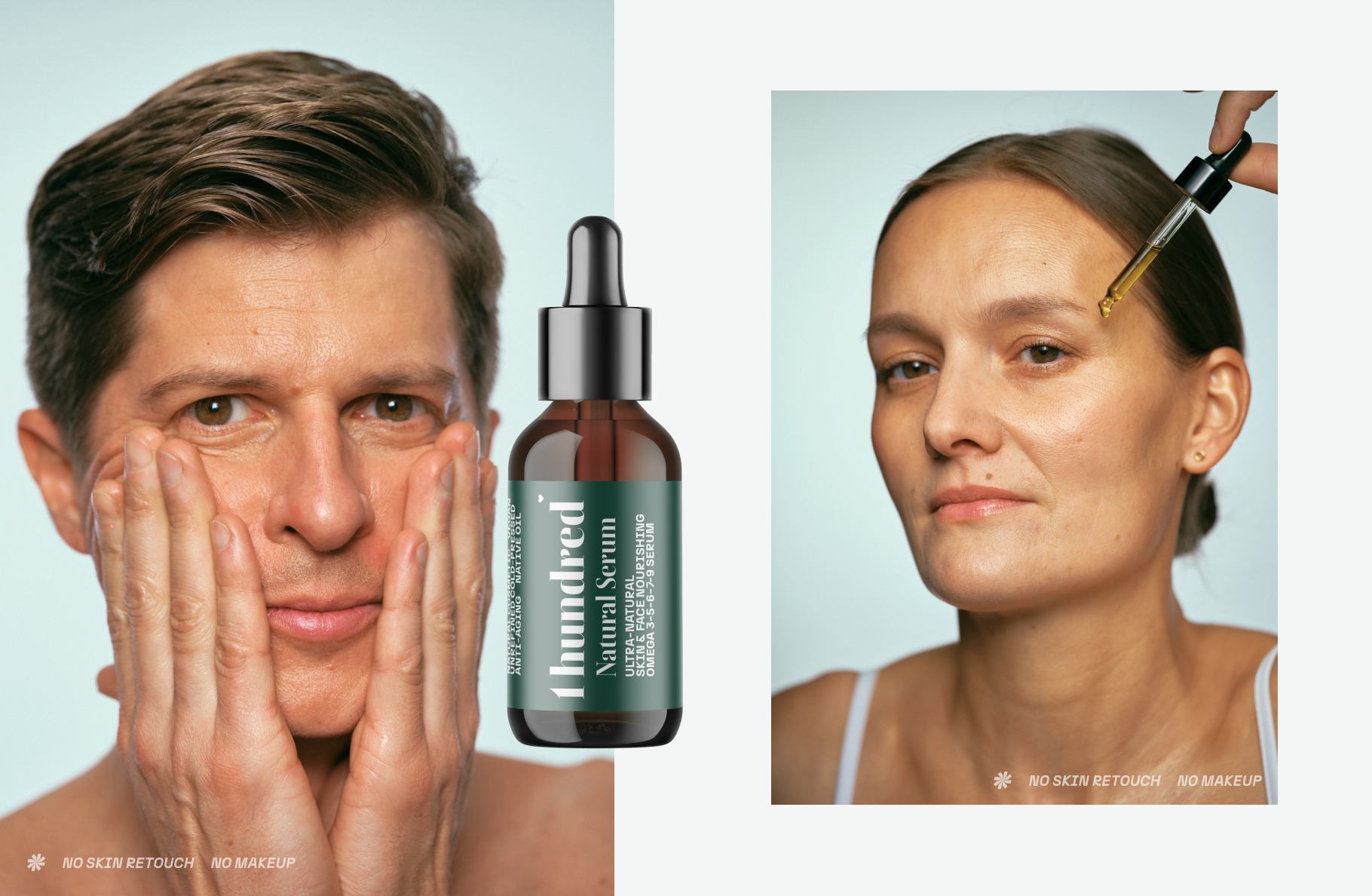 The effectiveness of 1hundred Omega 3-5-6-7-9 Serum stems from the fact that our diet is relatively low in high-quality, naturally occurring fats with high bioavailability. Furthermore, the skin is one of the last organs to receive fatty acids in the metabolic processes, as the brain, nervous system, and hormonal system take priority. This means that our skin is constantly exposed to a deficit of key nutrients and continuous environmental stress, both natural (sun, weather changes) and human-induced (smog, toxins, and residues from artificial fertilizers found in water). Hence, proper skin nutrition is of paramount importance.